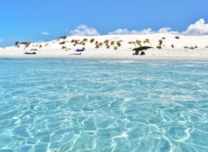 Uno degli elementi più caratteristici di Porto Pino sono le spettacolari dune di sabbia bianca.
